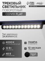 Трековый светильник FTL-005, серия Flat, поворотный, 12 Вт, 48 В, 4000К, 230 мм, чёрный, свечение нейтральное белое