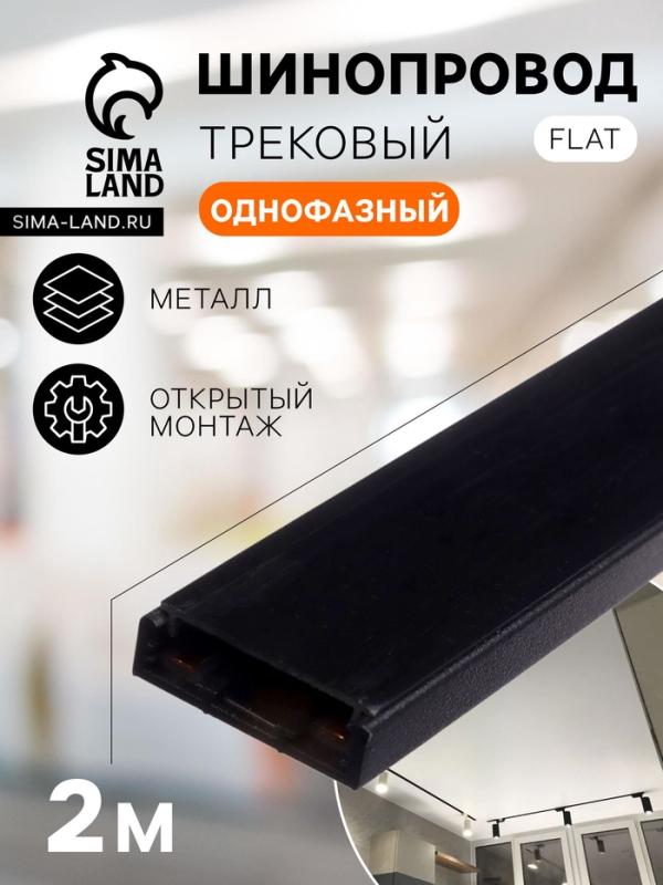 Шинопровод трековый магнитный, серия Flat, однофазный, открытый монтаж, 2 м, чёрный