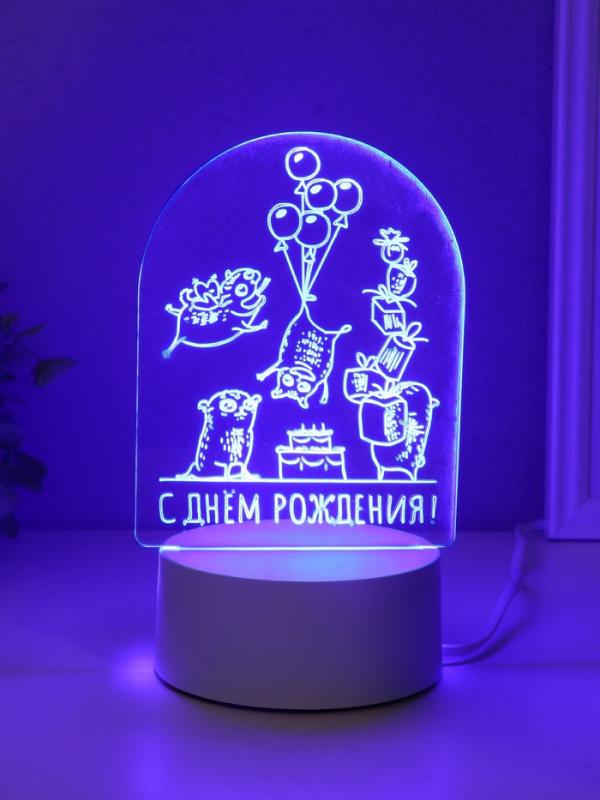 Светильник 3D RISALUX «Мопсы», LED-ночник, RGB, от сети, 9.5×11.8×17 см