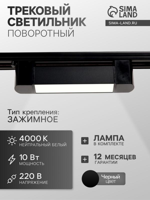 Трековый светильник линейный, поворотный, 10 Вт, 900 Лм, 4000К, IP20, чёрный, свечение нейтральное белое