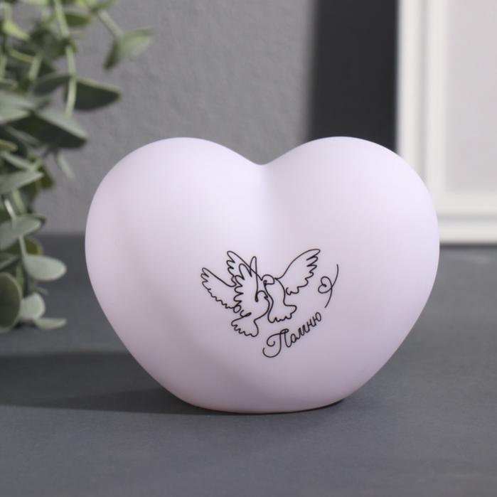Фигурка светящаяся RISALUX «Сердце. Голуби», LED-ночник, 3хLR44, 8×11×7 см