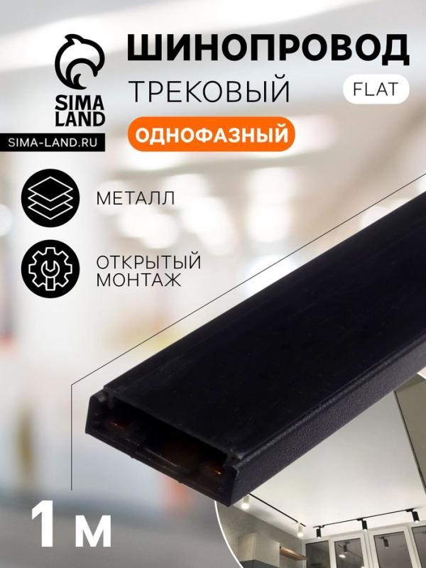 Шинопровод трековый магнитный, серия Flat, однофазный, открытый монтаж, 1 м, чёрный