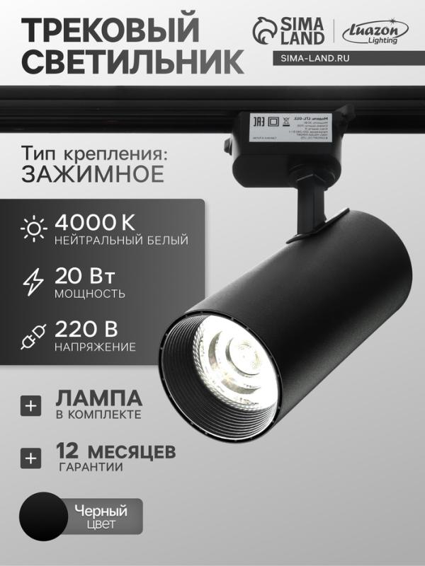 Трековый светильник Luazon lighting, LTL-008, 20 Вт, 1400 Лм, 4000 K, чёрный, свечение нейтральное белое