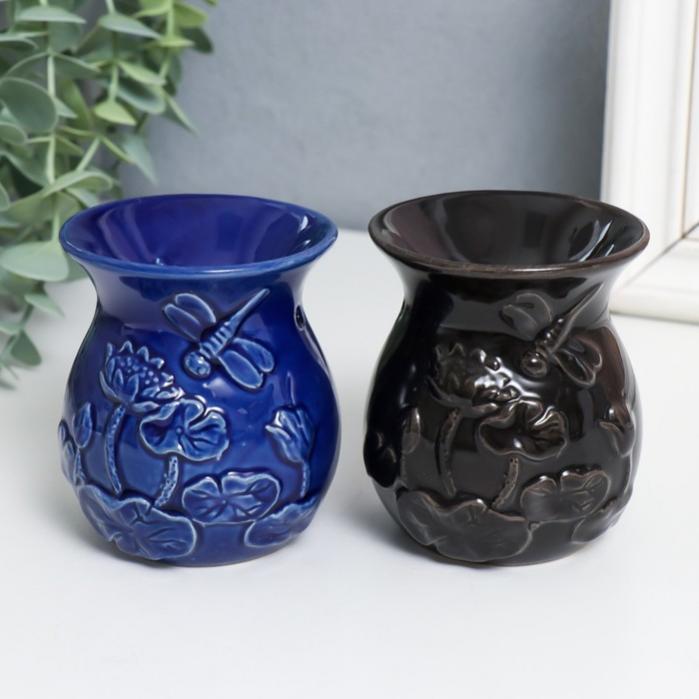 Аромалампа для эфирных масел «Стрекоза в цветах», керамика, 7×7×8 см, МИКС