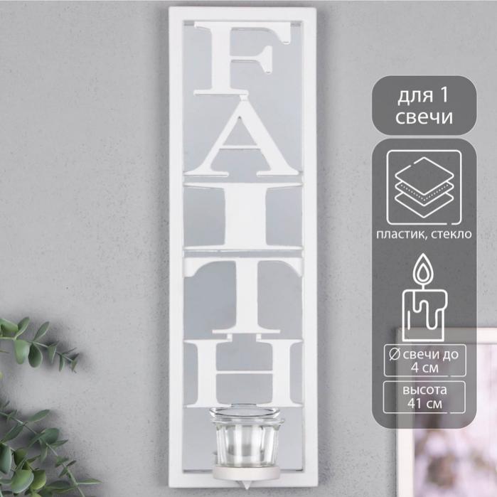 Подсвечник настенный на 1 свечу «Отражение веры», зеркальный, пластик, стекло, d=4 см, белый 8×12×41 см