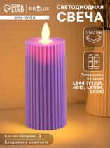Светодиодная свеча, ночник LED RISALUX «Уют», 3×AG13, сиреневый, 5×5×11 см