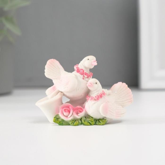 Фигурка полистоун «Голуби на книге в розовом венке», 4×6 см