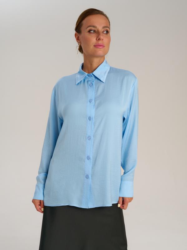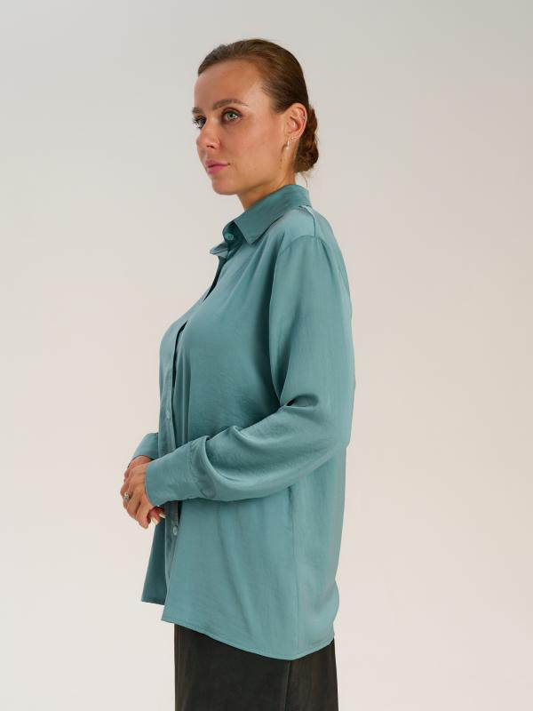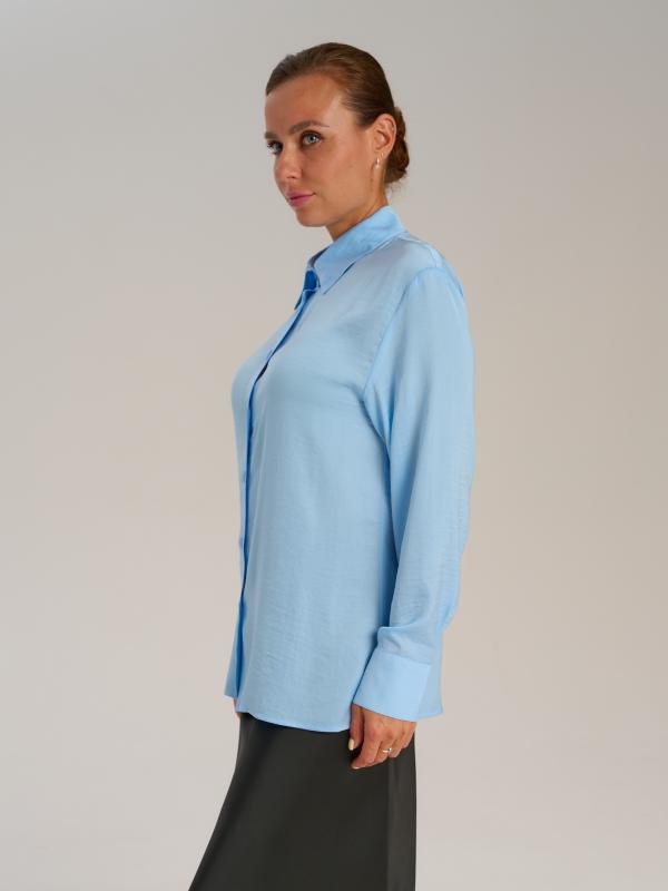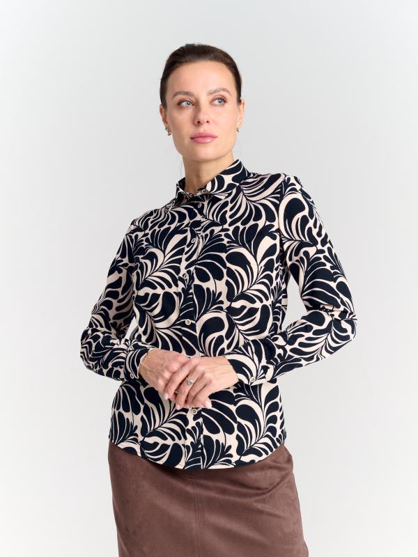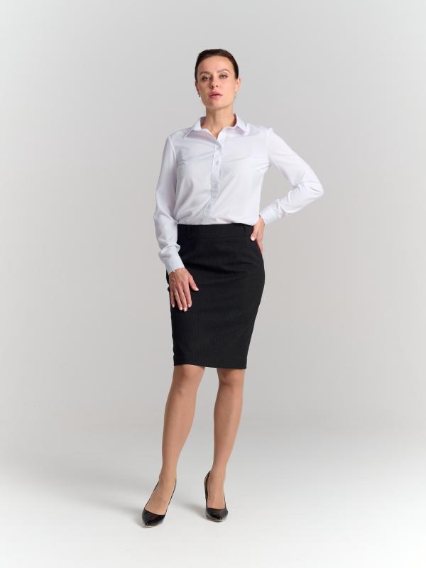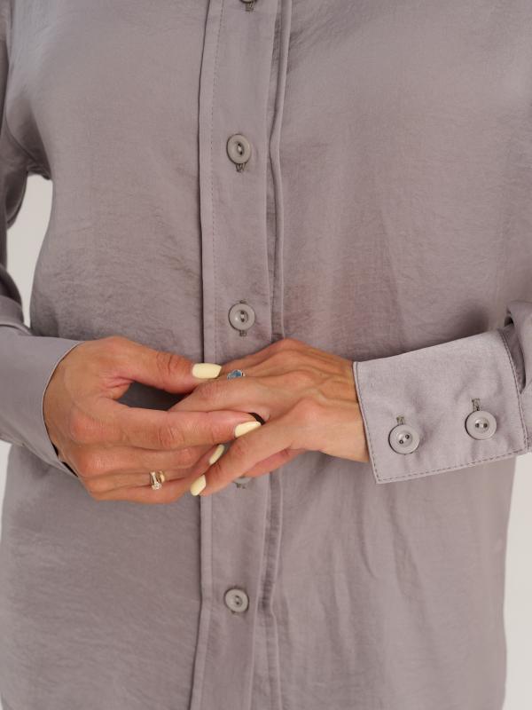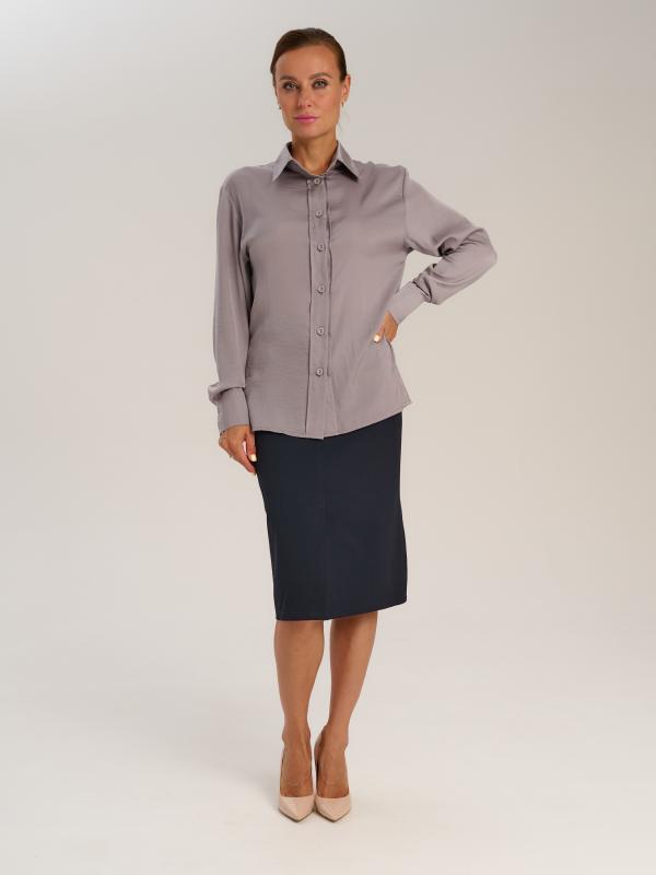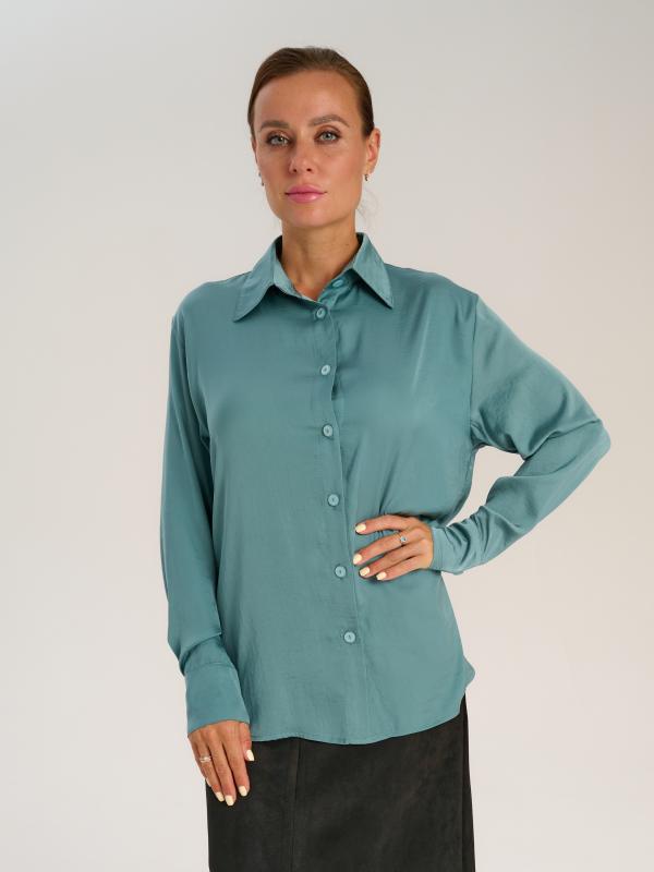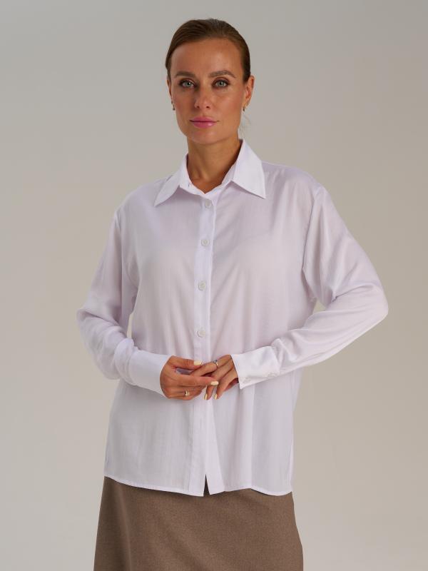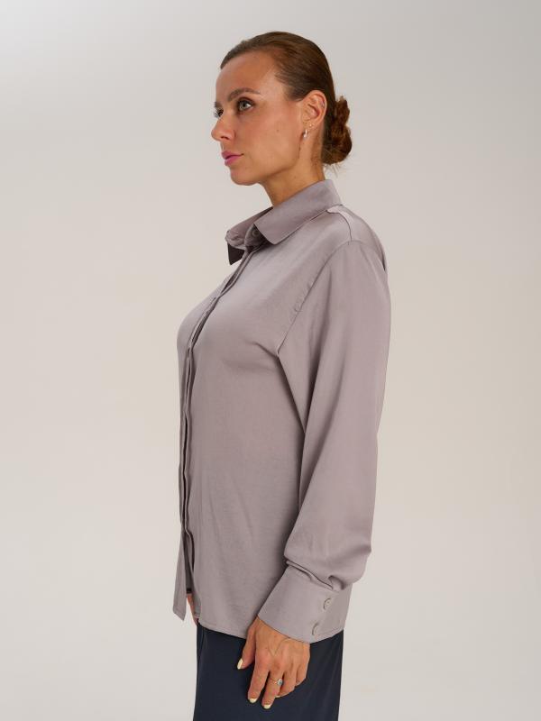 Женская рубашка с длинным рукавом приталенного силуэта. Застежка расположена спереди и закрепляется на пуговицы. Рукав данной модели на манжете и закреплен также пуговицей. Элегантная рубашка, прекрасно сочетается с брюками и юбками, любого формата - от классического офисного до повседневного.