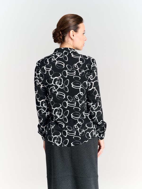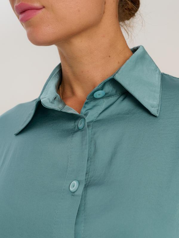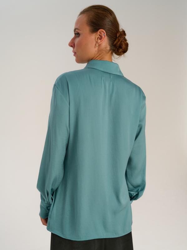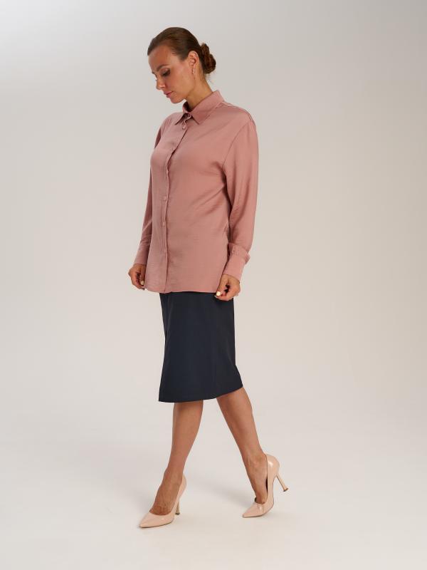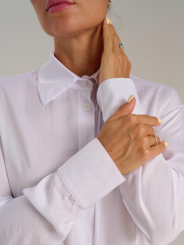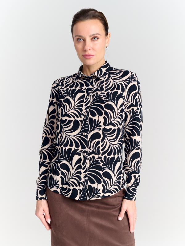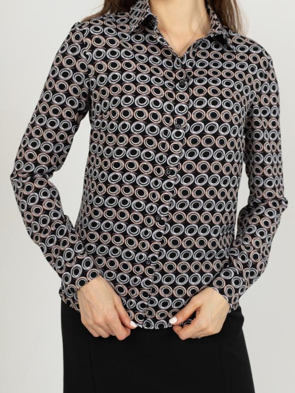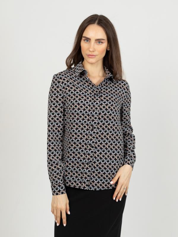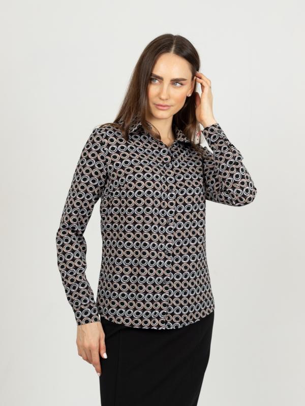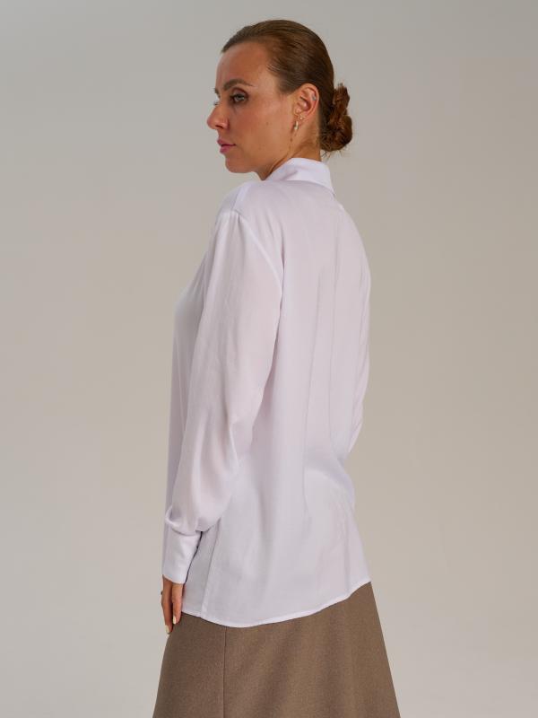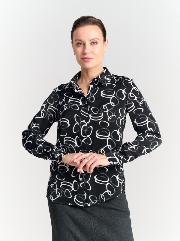 Женская рубашка с длинным рукавом приталенного силуэта. Застежка расположена спереди и закрепляется на пуговицы. Рукав данной модели на манжете и закреплен также пуговицей. Элегантная рубашка, прекрасно сочетается с брюками и юбками, любого формата - от классического офисного до повседневного.