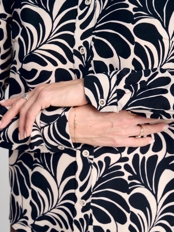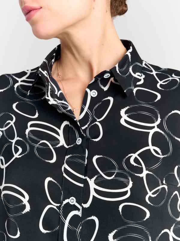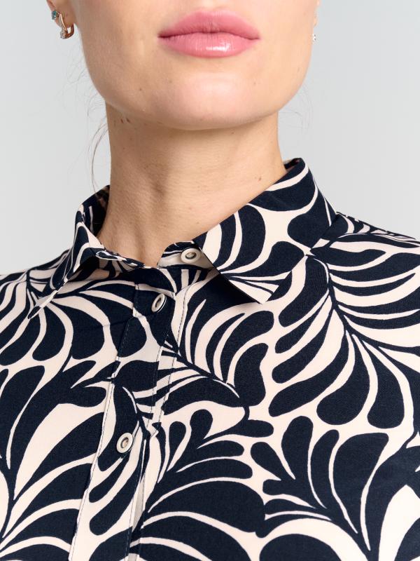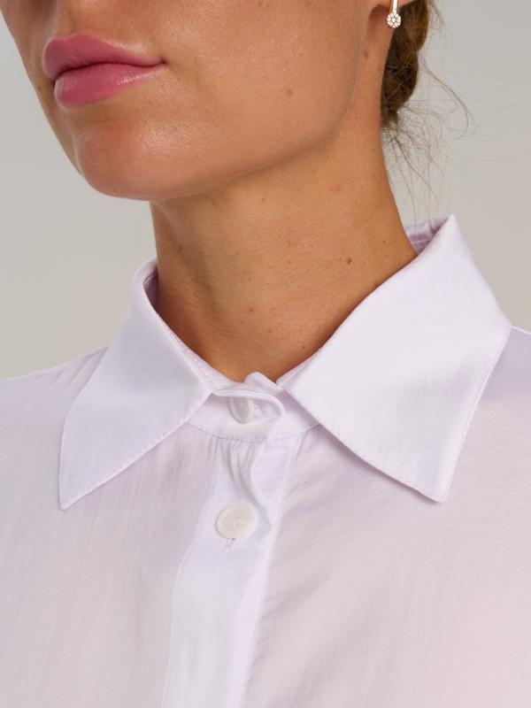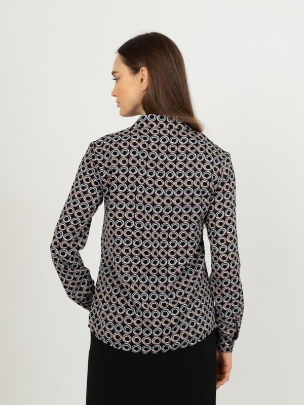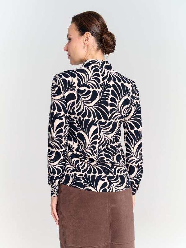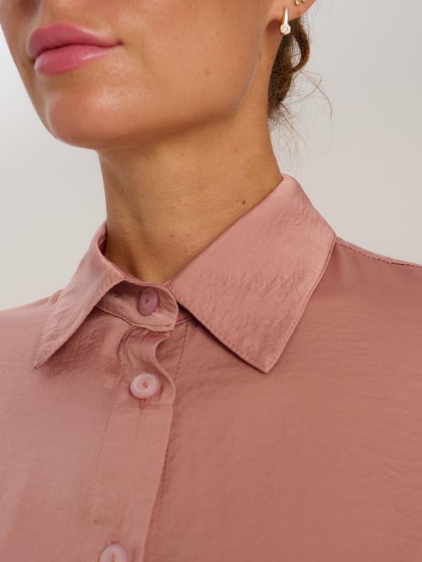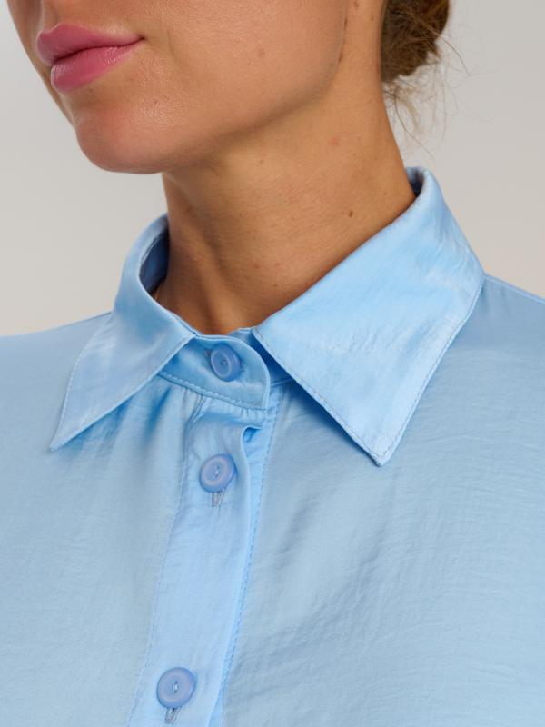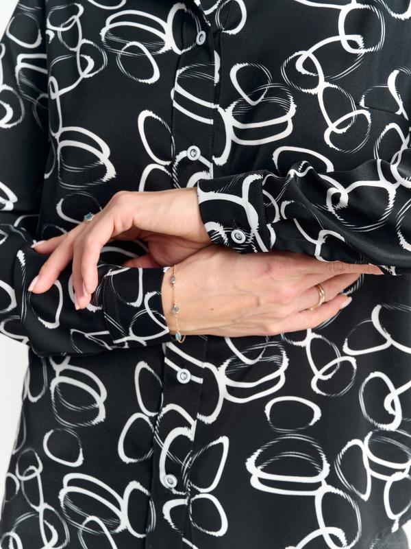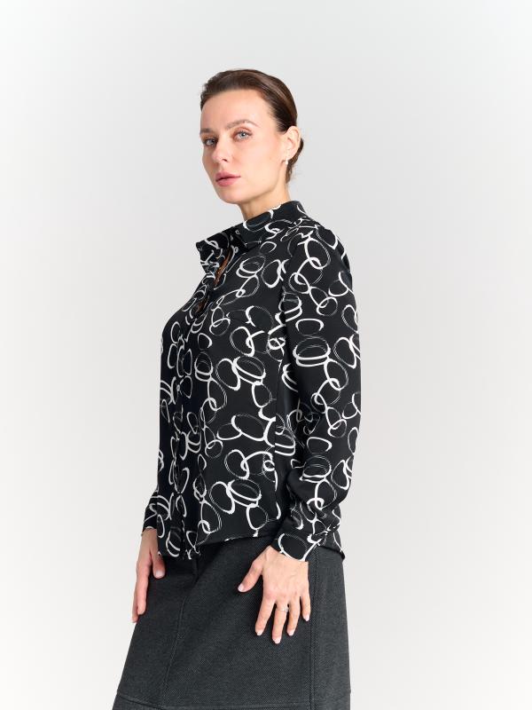 Женская рубашка с длинным рукавом приталенного силуэта. Застежка расположена спереди и закрепляется на пуговицы. Рукав данной модели на манжете и закреплен также пуговицей. Элегантная рубашка, прекрасно сочетается с брюками и юбками, любого формата - от классического офисного до повседневного.