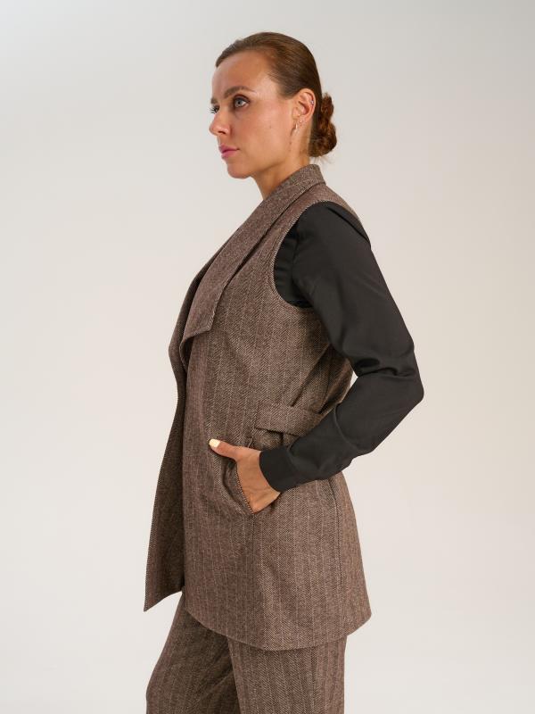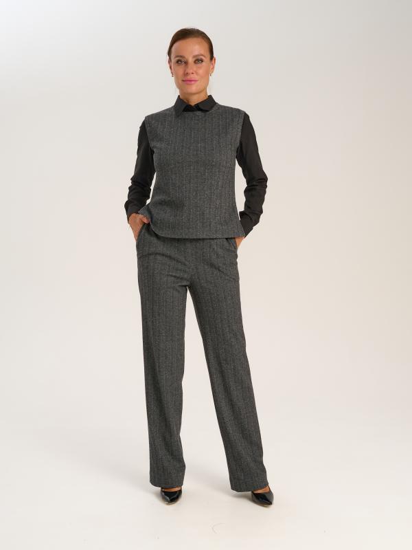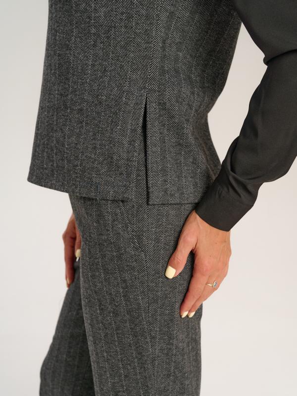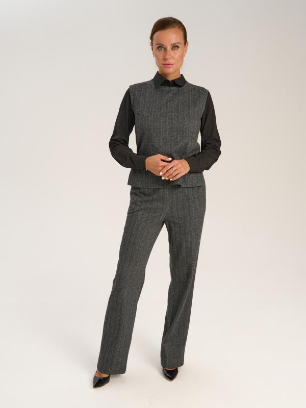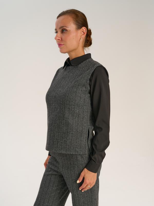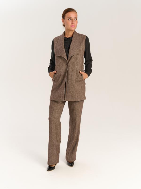 Женский жилет полуверного типа из костюмной ткани с V-образной горловиной, по бокам разрезы. Новый тренд осеннего сезона, станет прекрасной основой базового гардероба.Брюки арт.448-1123