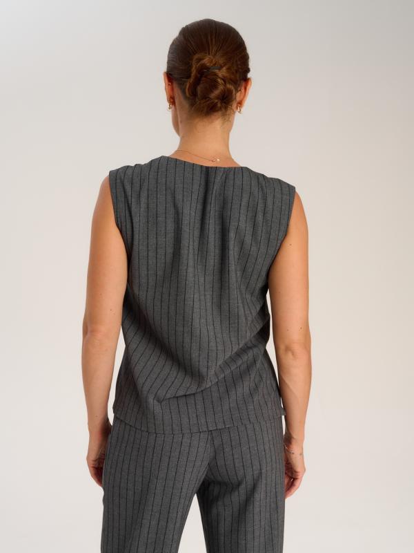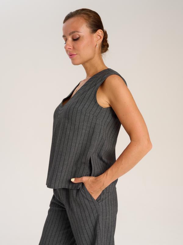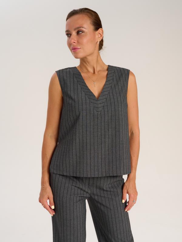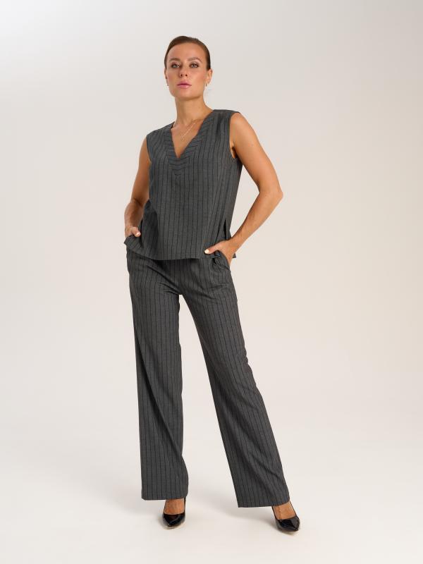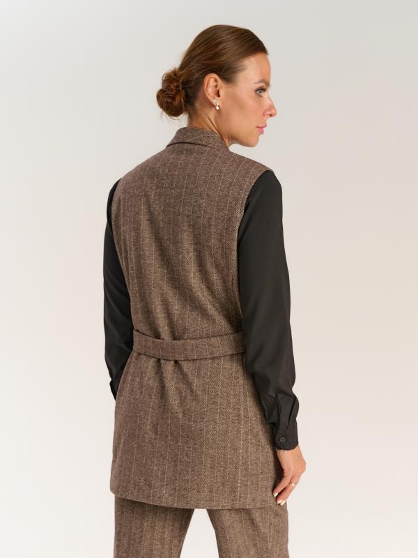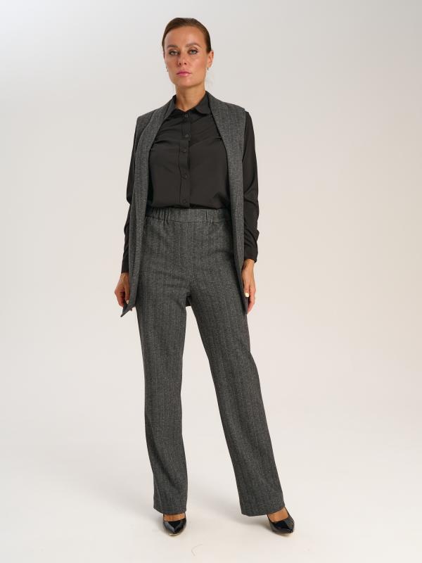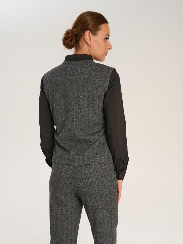 Женский жилет полуверного типа из костюмной ткани с V-образной горловиной, по бокам разрезы. Новый тренд осеннего сезона, станет прекрасной основой базового гардероба.Брюки арт.448-1123