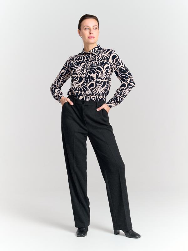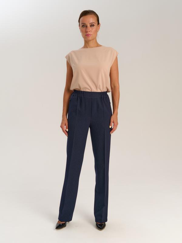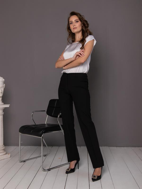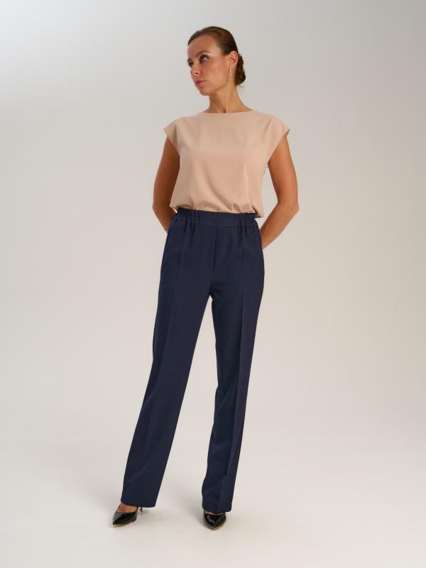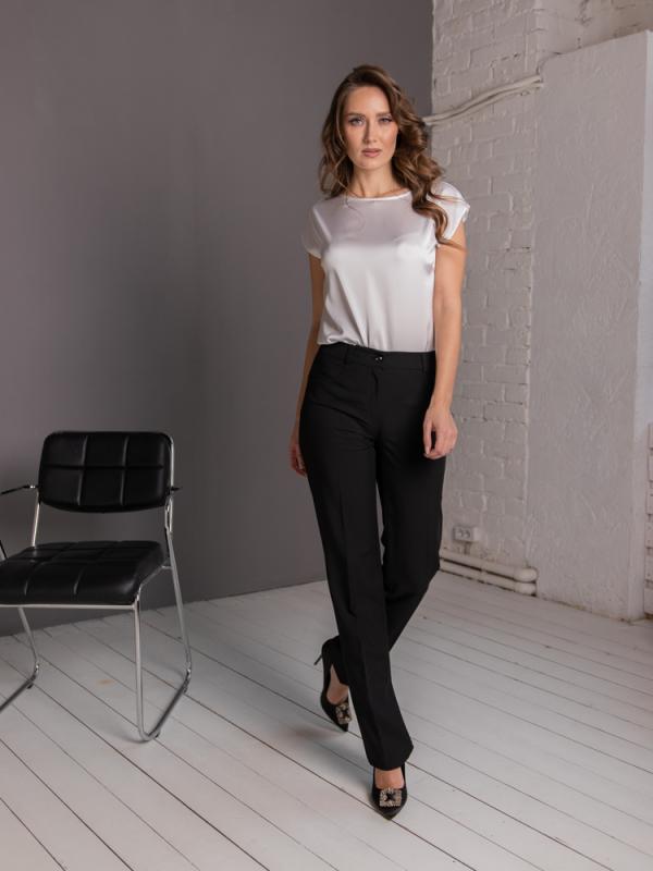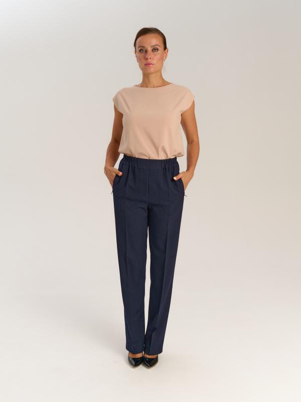 Женские брюки на притачном поясе, сзади на резинке. Спереди по бокам расположены функциональные карманы с застежкой на молнию. Великолепная и комфортная посадка позволяет точно и корректно подчеркнуть фигуру.Блузка арт.989-1110