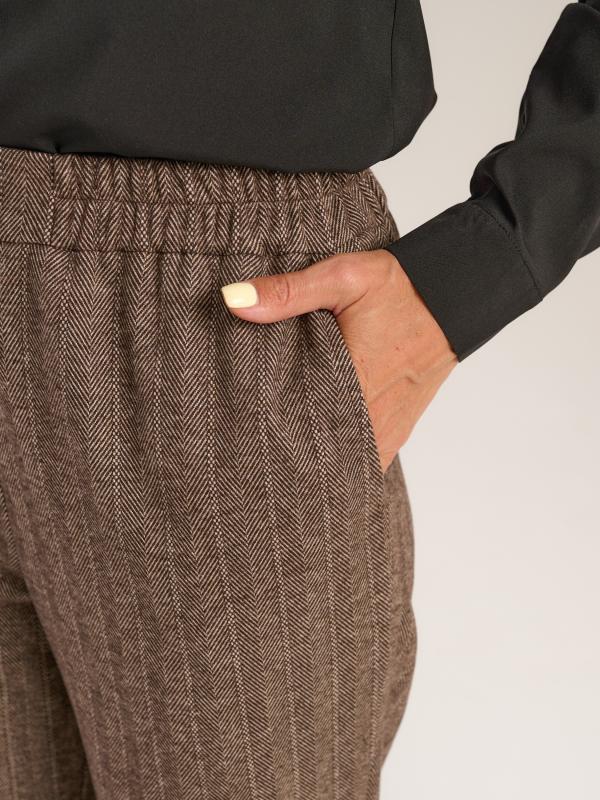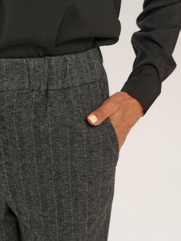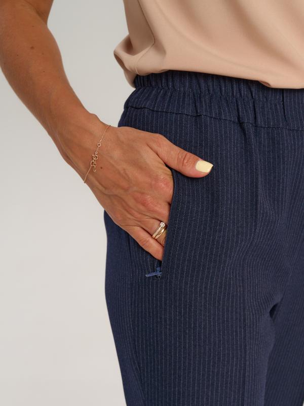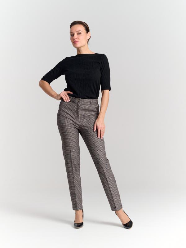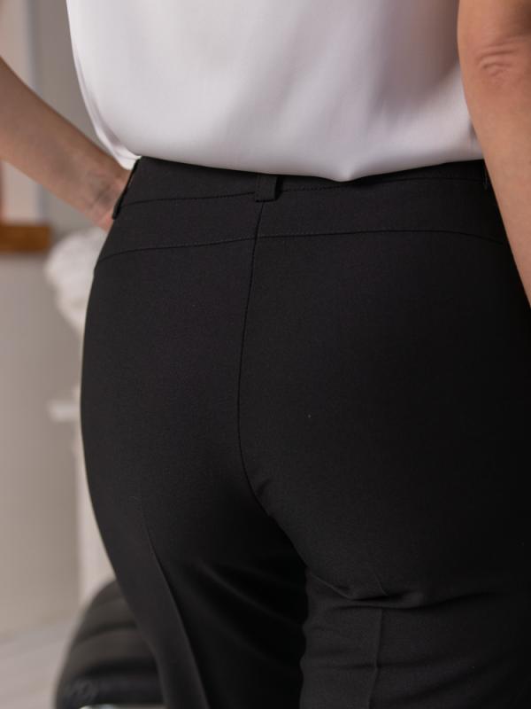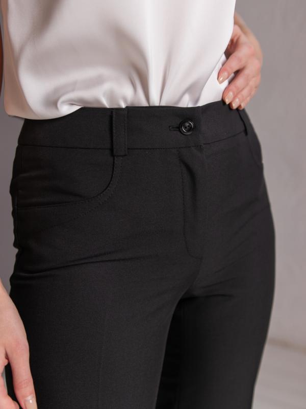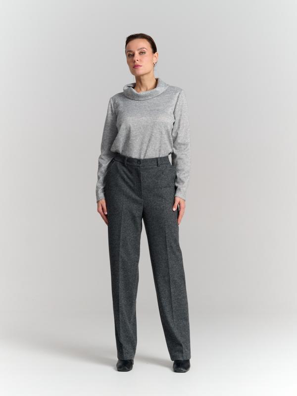 Женские брюки на притачном поясе, сзади на резинке. Спереди по бокам расположены функциональные карманы с застежкой на молнию. Великолепная и комфортная посадка позволяет точно и корректно подчеркнуть фигуру.Блузка арт.989-1110