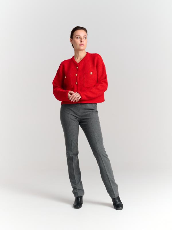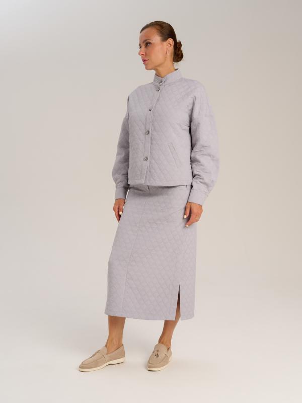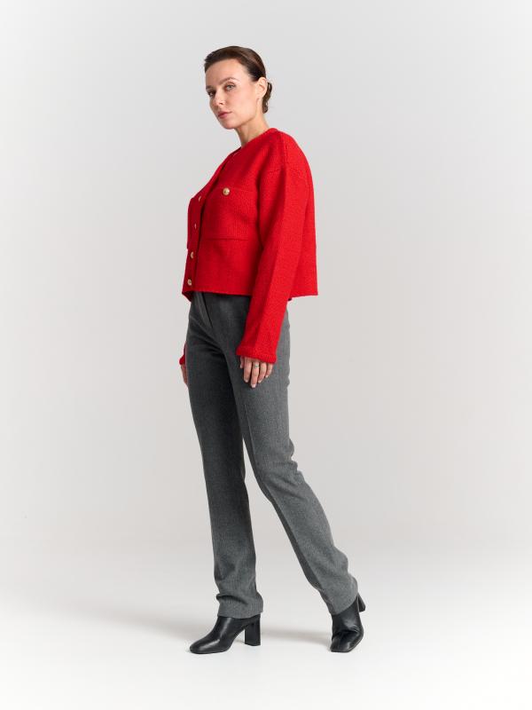Женский укороченный демисезонный жакет с застежкой, выполненной по среднему шву переда на пуговицы и воротником стойка. Спереди по бокам небольшие функциональные карманы. Прекрасно сочетается с брюками, джинсами, юбкой, платьем любого формата.Юбка арт.1119-1114