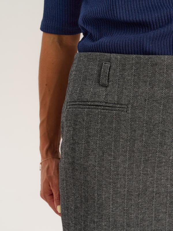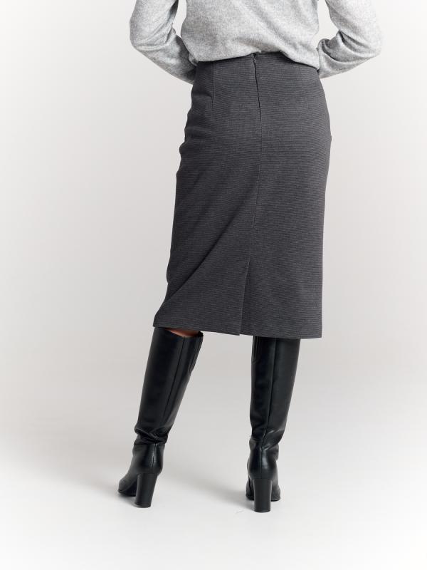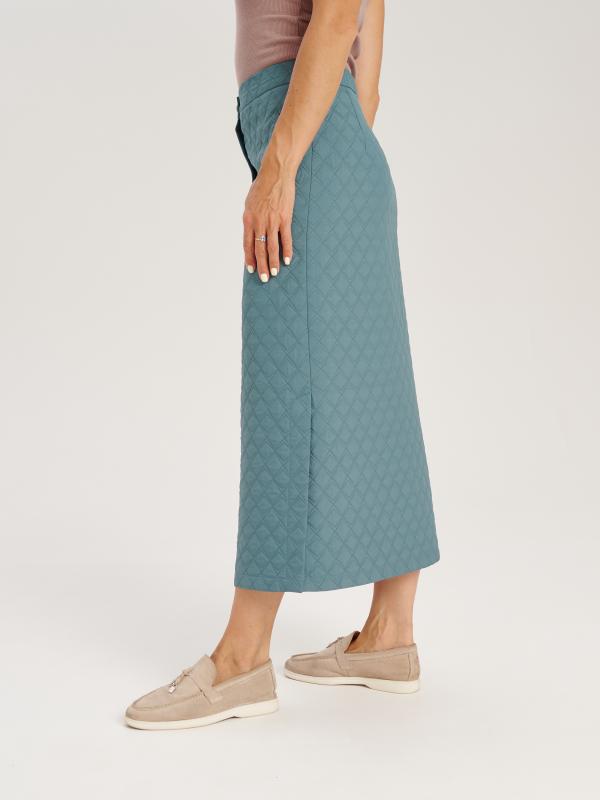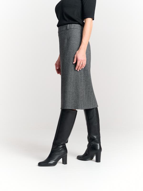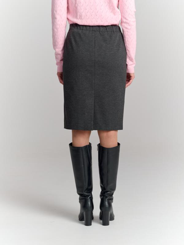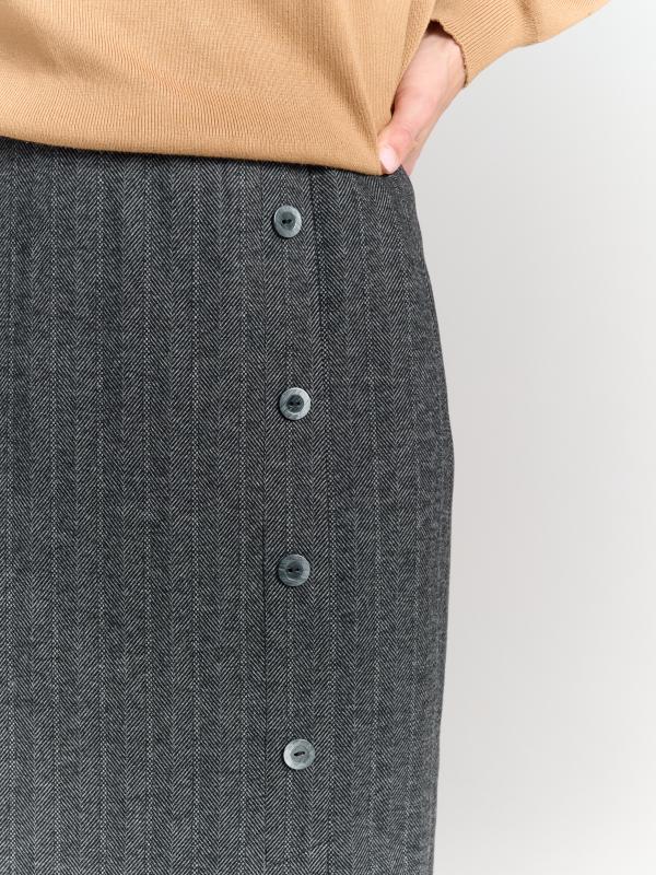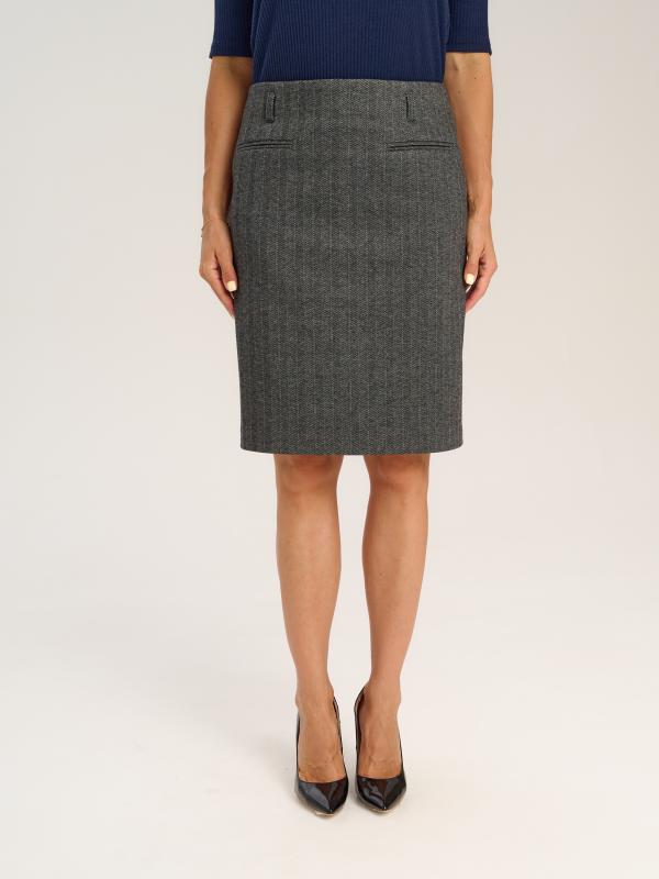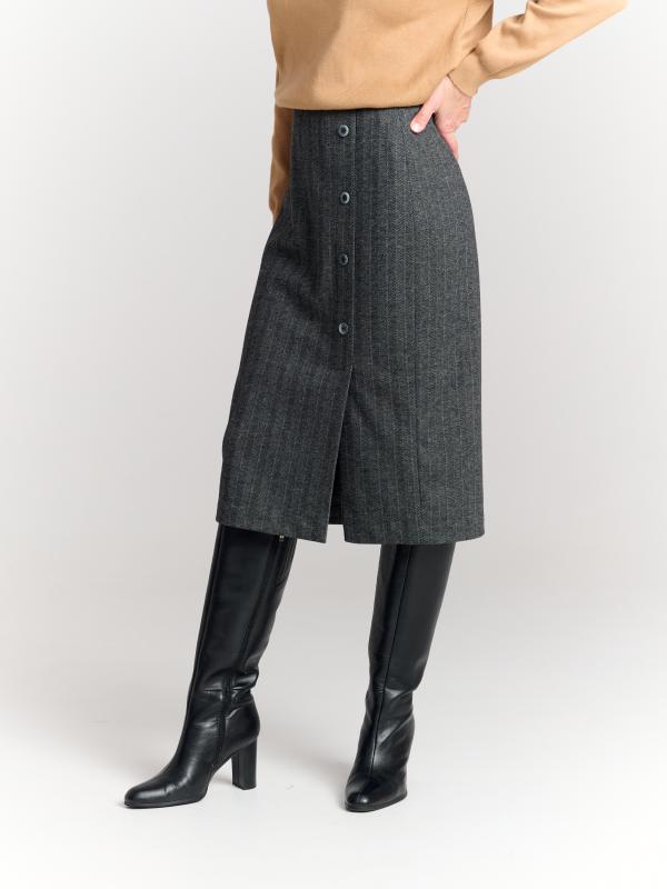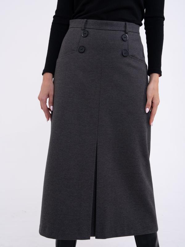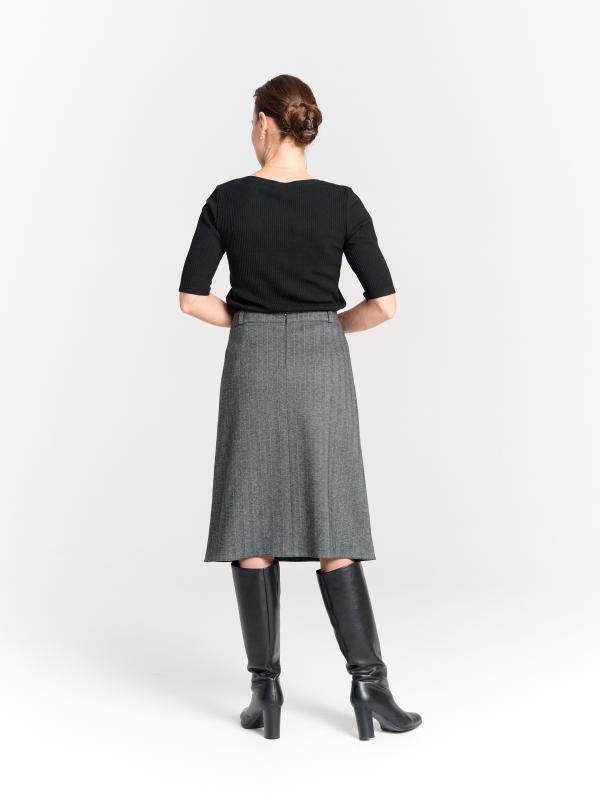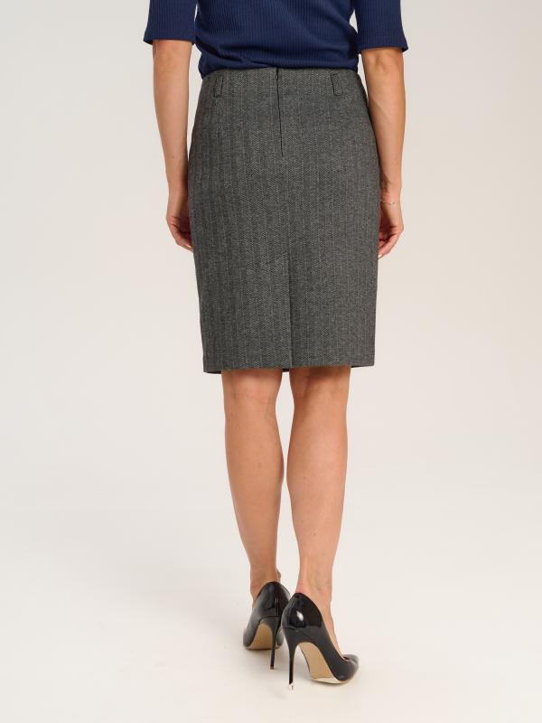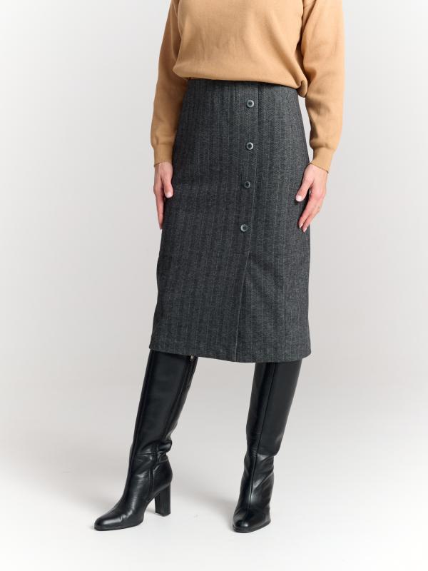 Женская юбка прямого силуэта, зауженная к низу, на подкладке, с обтачным поясом. Застежка расположена сзади по среднему шву на потайную тесьму молнию. Прекрасный вариант теплой юбки, сочетающий в себе фигурные рельефы по бокам, декорированные пуговицами.