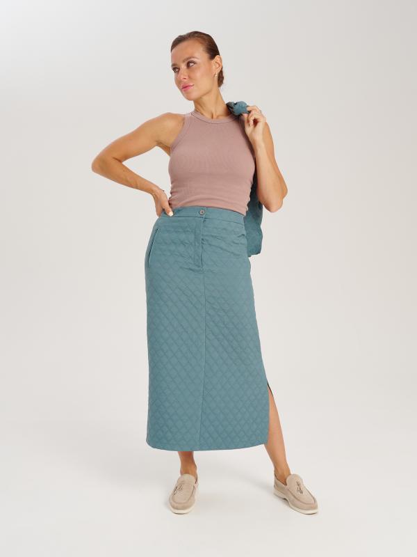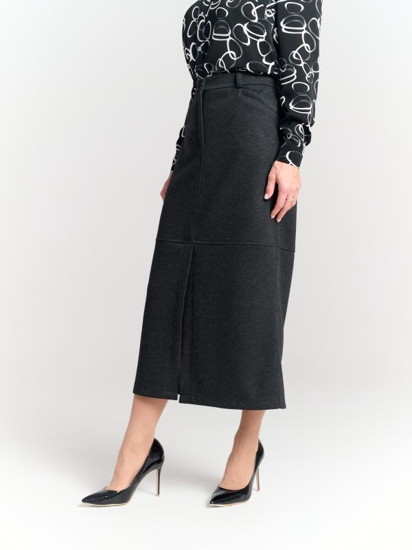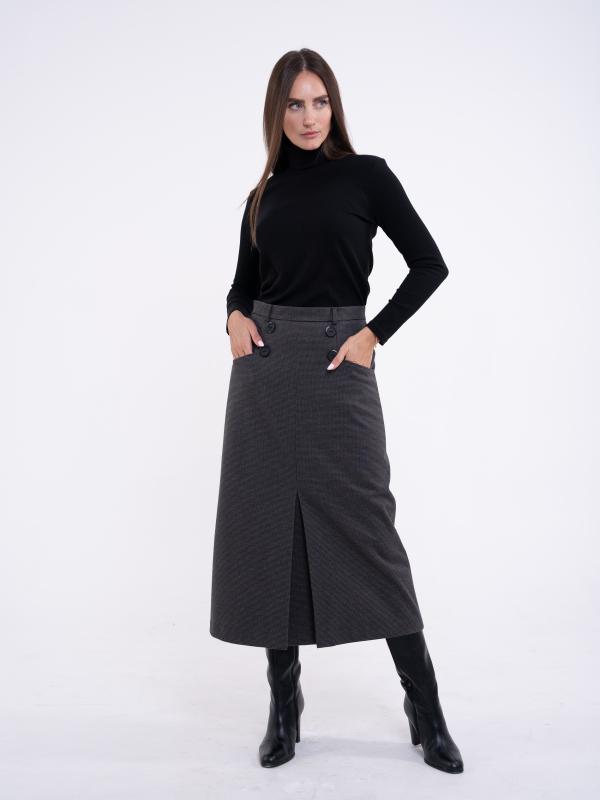 Женская демисезонная юбка прямого силуэта на подкладке с притачным поясом сзади на резинке. Застежка расположена спереди по среднему шву на молнию и закрепляется пуговицей. Прекрасный повседневный офисный вариант, с очень удобными функциональными карманами спереди на молнии, сбоку по ноге шлица.Жакет арт.057-1114