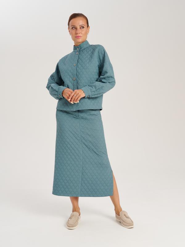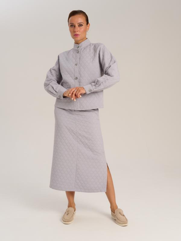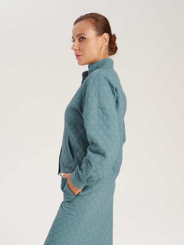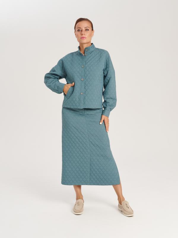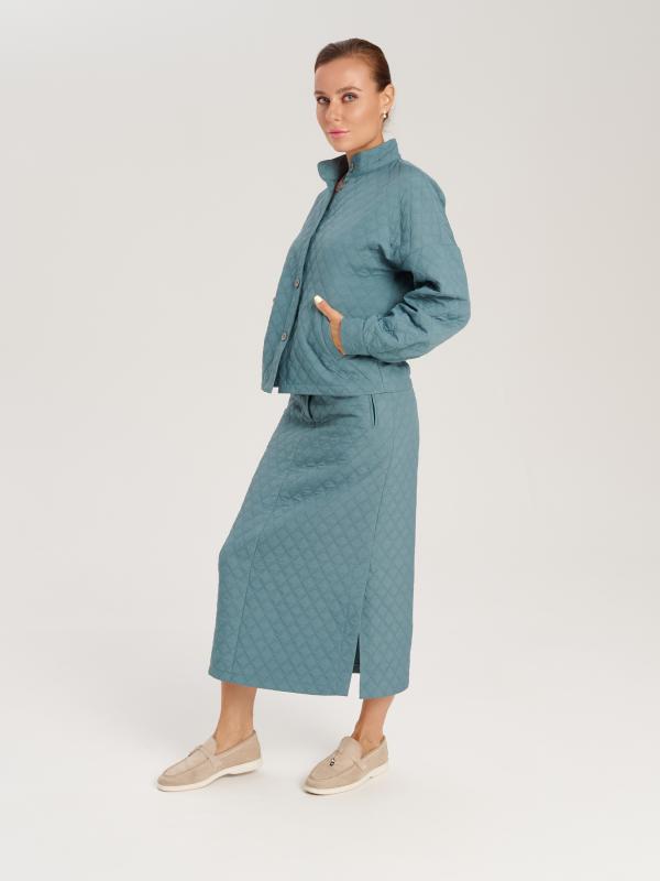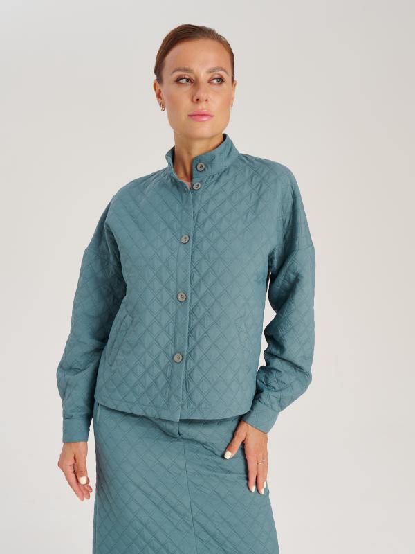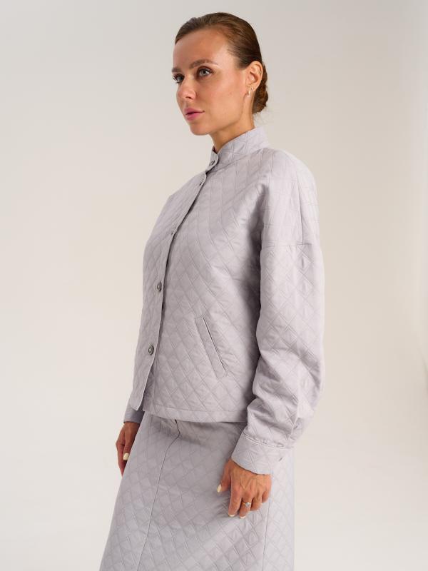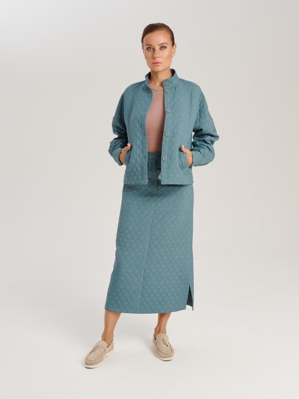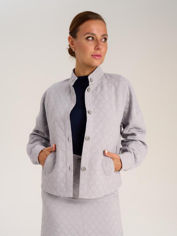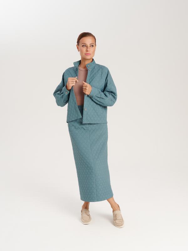 Женский укороченный демисезонный жакет с застежкой, выполненной по среднему шву переда на пуговицы и воротником стойка. Спереди по бокам небольшие функциональные карманы. Прекрасно сочетается с брюками, джинсами, юбкой, платьем любого формата.Юбка арт.1119-1113