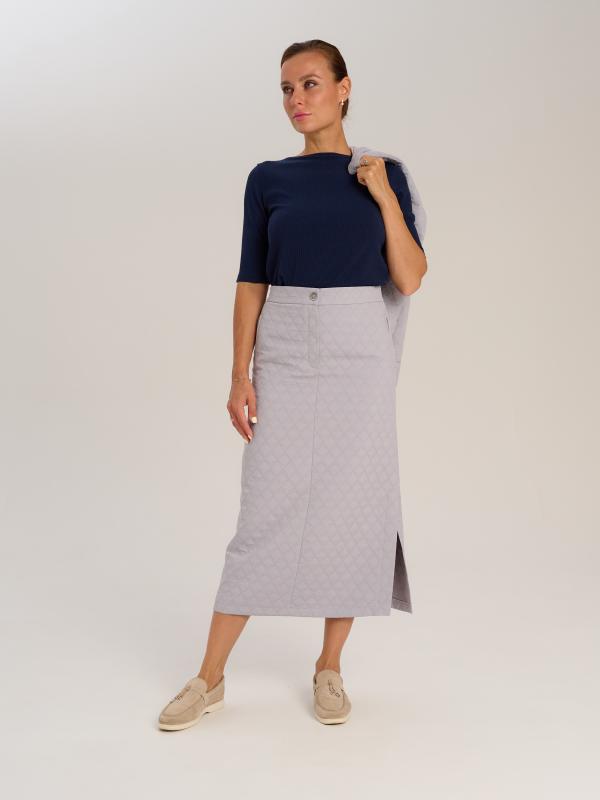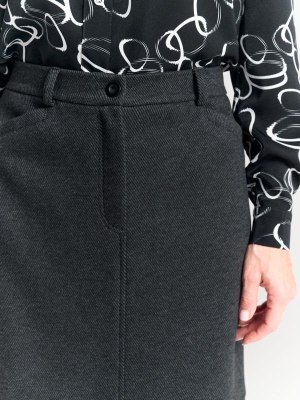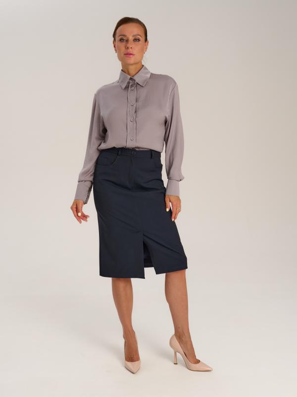 Женская демисезонная юбка прямого силуэта на подкладке с притачным поясом сзади на резинке. Застежка расположена спереди по среднему шву на молнию и закрепляется пуговицей. Прекрасный повседневный офисный вариант, с очень удобными функциональными карманами спереди на молнии, сбоку по ноге шлица.Жакет арт.057-1113