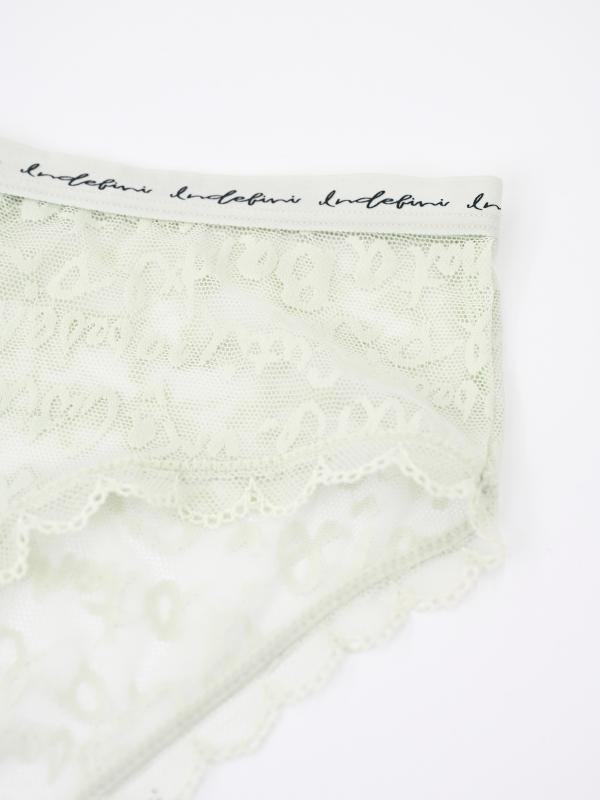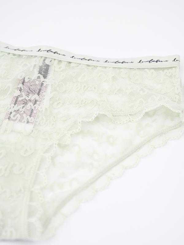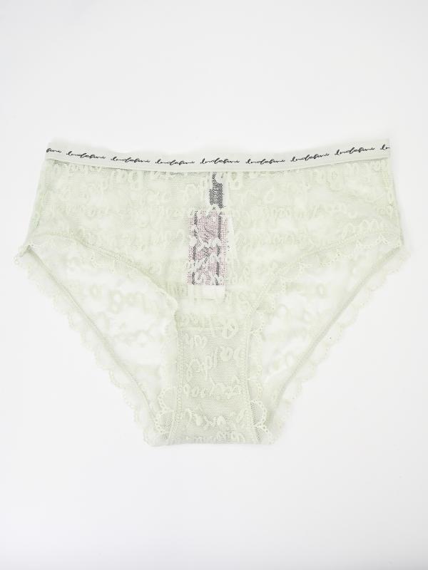 Трусы средней посадки с широкой эластичной резинкой на талии черного цвета, украшенными светлым шрифтом контрастным логотипом бренда «INDEFINI».