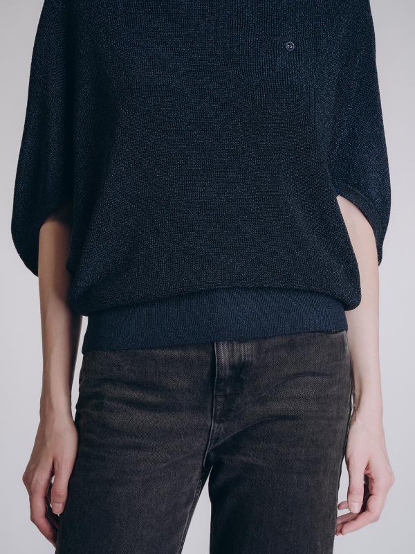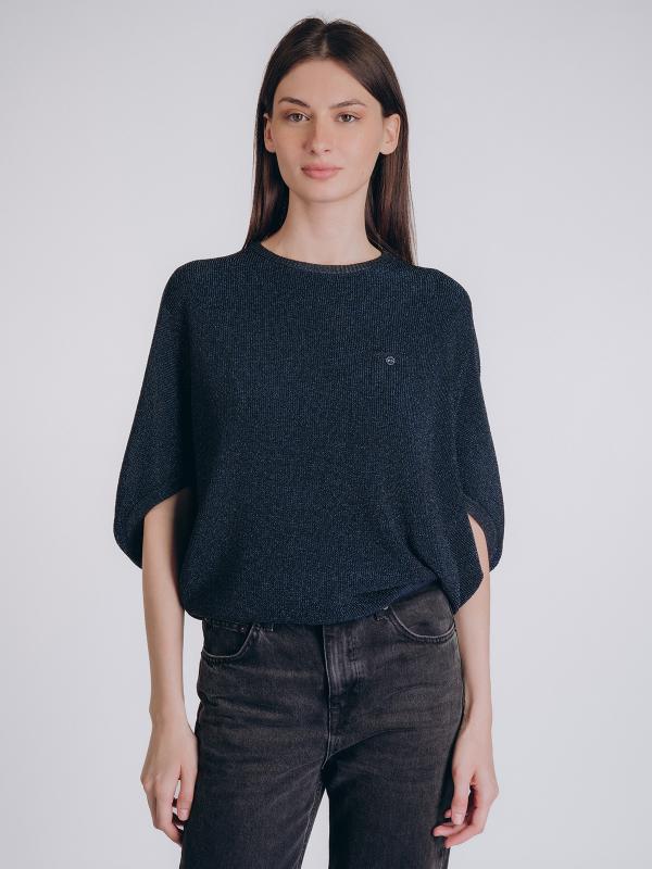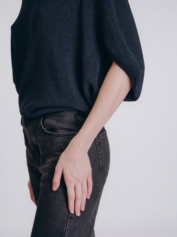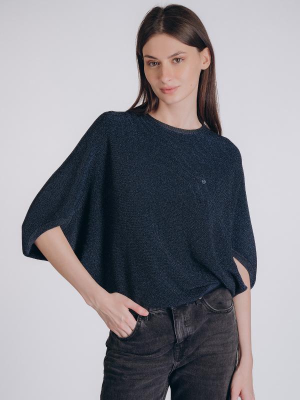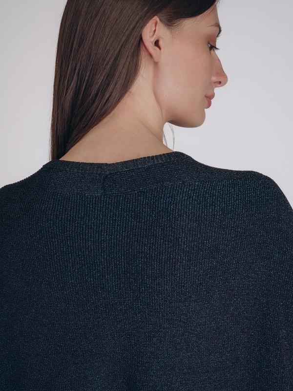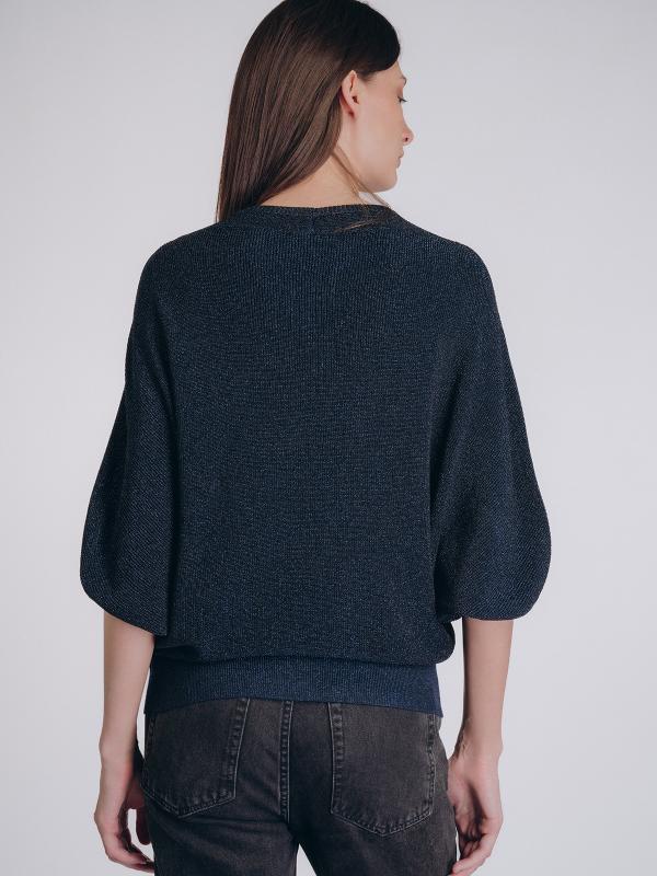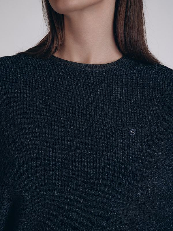 Глубокий синий оттенок и деликатный блеск придают образу утончённость и современную лаконичность, делая эту кофту стильным акцентом вашего гардероба.