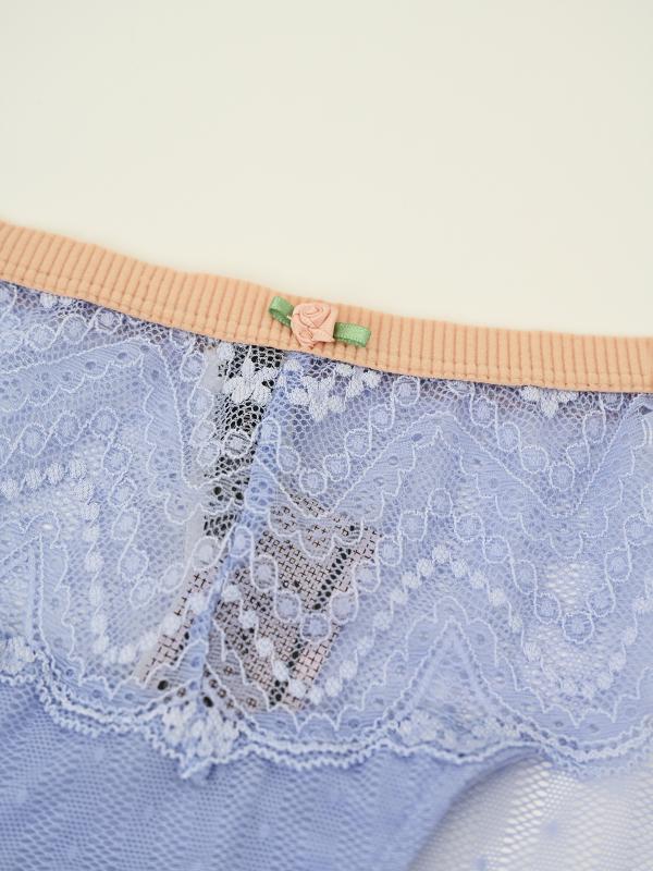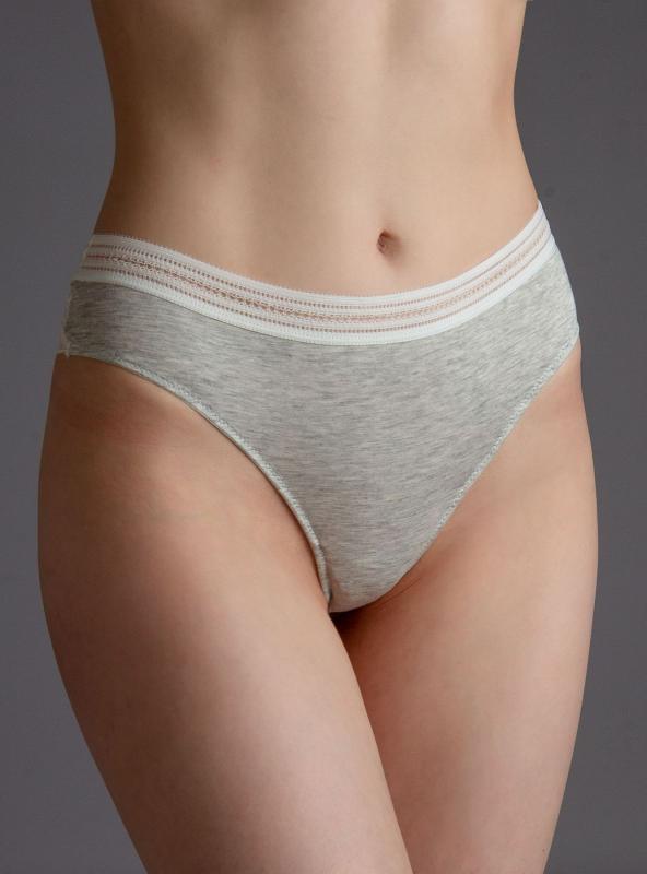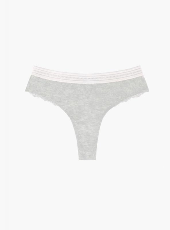 Трусы-стринги из бамбука, серого цвета, с кружевной частью сзади, средней посадки, на мягкой резинке.