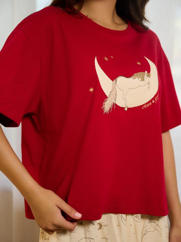 Трусы танга женские красные, изготовленные из хлопка, надежно прилегают к телу благодаря мягкой эластичной резинке на талии. Хлопковый материал является дышащим и пропускающим воздух, обеспечивая приятные ощущения при носке. Трусы украшены принтом с изображениями надписей. Женские трусы помогут создать новогоднее настроение и придать радости в повседневность.
