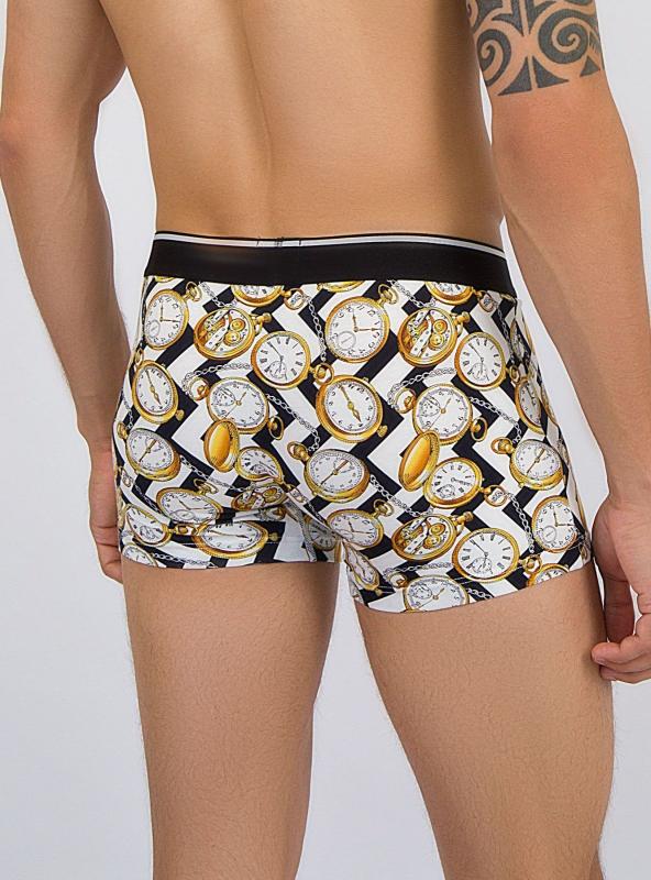 Выполнены в белом цвете с ярким и веселым принтом, изображающим золотые часы на цепочке.